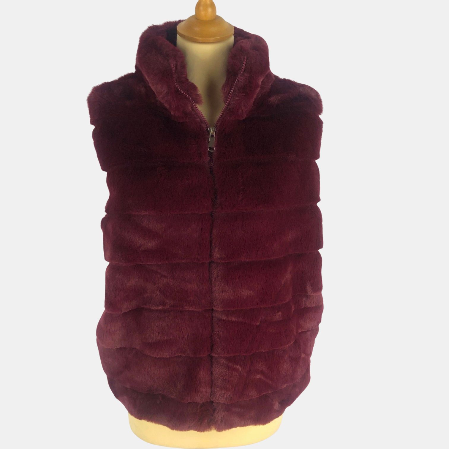 Chaleco de pelos granate sin mangas con cierre de cremallera