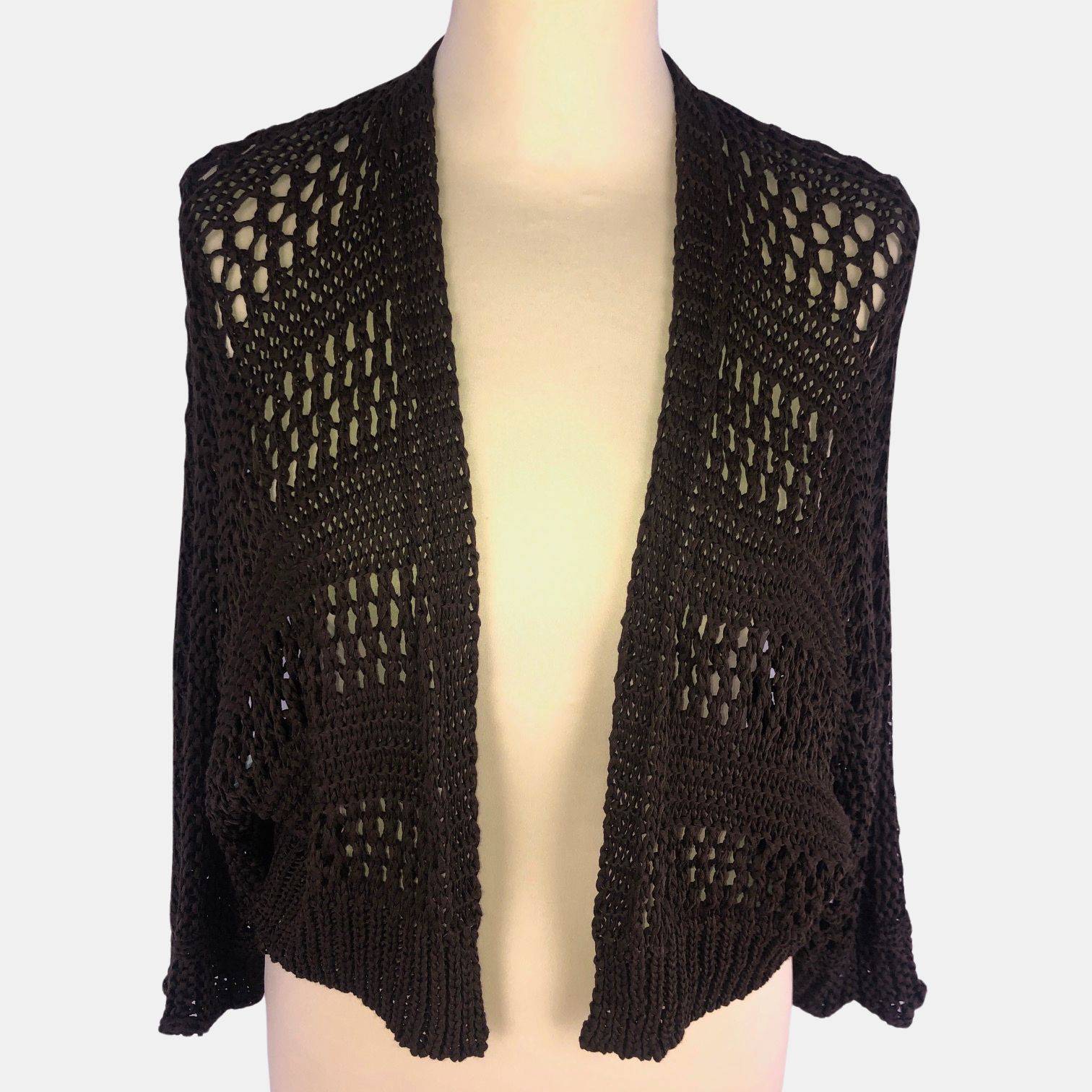 Chaqueta corta marrón de punto calado