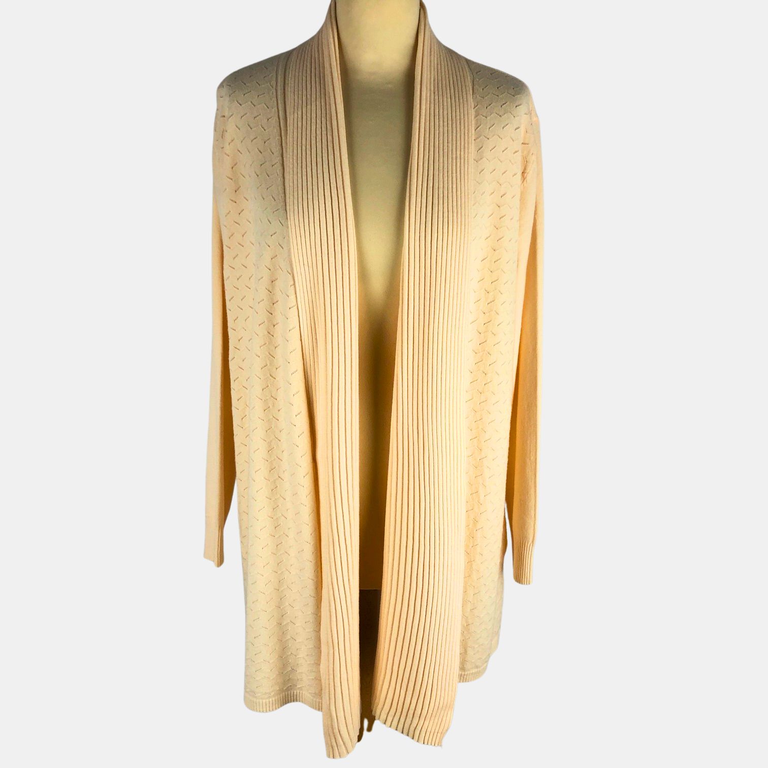 Chaqueta de punto abierta en beige con labrado y solapa de canale
